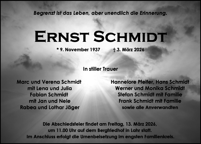 Er verstarb am 03.03.2026 nach längerem Aufenthalt im Caritashaus “St. Elisabeth“ in Lahr im Alter von 88 Jahren.