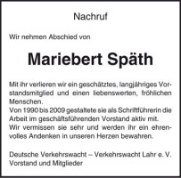 Nachruf Mariebert Späth Datum: 10.09.2010