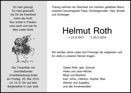 Unser langjähriges Ehrenmitglied Helmut Roth, ist am 20. Mai 2014 nach schwerer Krankheit gestorben.