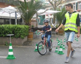 Beim diesjährigen Kinderfest in der Lahrer Innenstadt waren wir wieder mit einem Fahrradparcours und Eier/Helmtest vertreten.