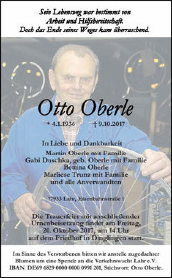 Da der Verstorbene auch derjenige war, bei dem die Fäden zusammenliefen, gelang es ihm bei so manchen Vereinsaktivitäten und Aktionen, seine ganze Familie mit einzubinden – ein Glücksfall und eine große Hilfe für die Verkehrswacht Lahr. Auch dafür unser aller aufrichtiger DANK!
