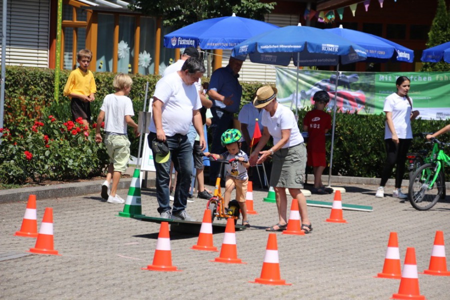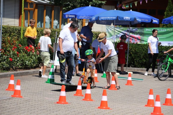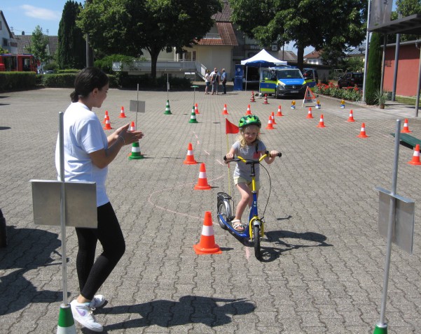 Bei uns konnten die Kinder einen Fahrrad- oder Rollerparcours machen. Allerdings nur nach vorheriger Aufklärung mit einem Eier-Helmtest und einem passenden Schutzhelm. So hatten die großen und kleinen Kinder ihren Spass. Außerdem konnten die Eltern in der Wartezeit ihre Sehstärke kostenlos überprüfen lassen. Die Veranstaltung war ein voller Erfolg!!