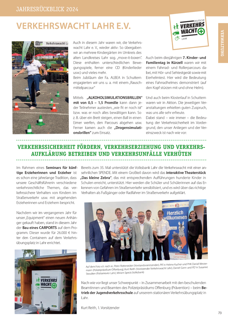 Positiv vermerkte Kurt Reith, dass zu den bisher 74 Mitgliedern weitere Städte aus dem ehemaligen Landkreis Lahr gewonnen werden konnten, die künftig zur Familie der Verkehrswacht Lahr zählen. Dem